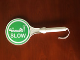شکل طراحی بیشتر این تابلوها شبیه به یک راکت شامل یک صفحه و یک دسته می باشد که علائم مورد استفاده در قسمت صفحه متصل به دسته چاپ میشود.البته ثبت علائم در دوطرف تابلو صورت میگیرد که معمولا در یک طرف علامت مربوط به رانندگی آهسته که به معنای کاهش سرعت است و در سمت دیگر علامت ایست کامل ثبت میشود.